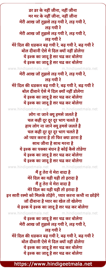 Lyrics of Darr Darr Ke Nahee Jina - डर डर के नहीं जीना
