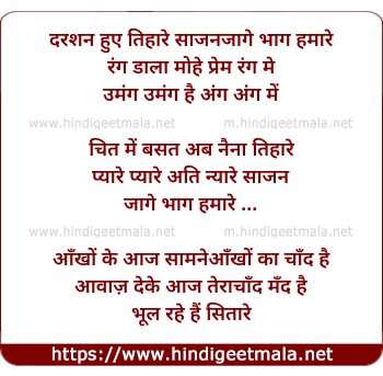 Lyrics of Darshan Hue Tihaare Saajan - दरशन हुए तिहारे साजन
