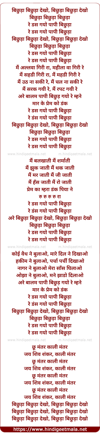 Lyrics of Das Gayo Paapi Bichhuda - बिछुड़ा बिछुड़ा देखो, बिछुड़ा बिछुड़ा देखो