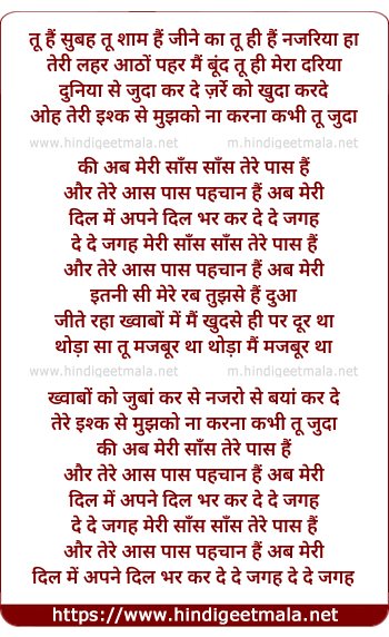 tu hai subah tu shaam hai jeene ka tu hi hai nazariya ha