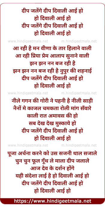 Lyrics of Deep Jalenge Deep Diwali Aayi Ho - दीप जलेंगे दीप दिवाली आई हो
