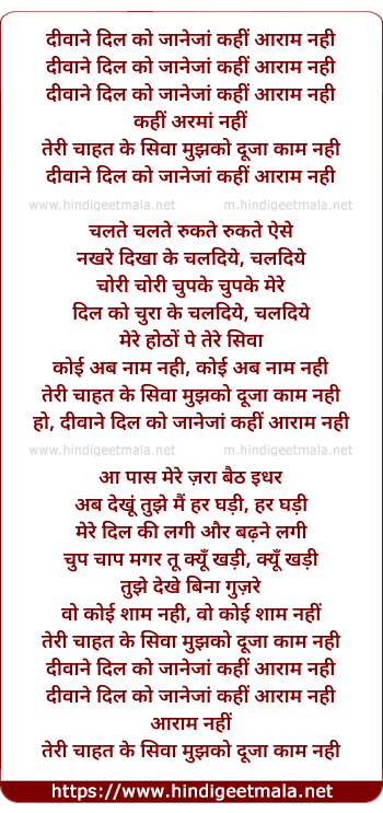 Lyrics of Deewane Dil Ko - दीवाने दिल को