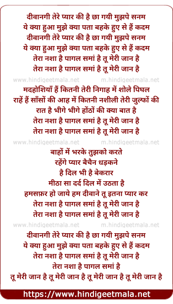 Lyrics of Deewangi Tere Pyar Ki - दीवानगी तेरे प्यार की