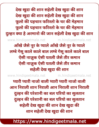 Lyrics of Dekh Khuda Ki Shan Saheli - देख खुदा की शान सहेली