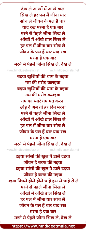 Poetic Translation - Lyrics of Dekh Le Aankho Me Aankhe Daal (Remix) - देख ले आँखों में आँखे डाल