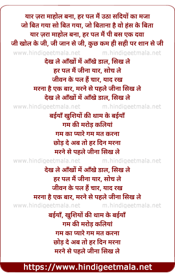 har pal me jina yaar, soch le