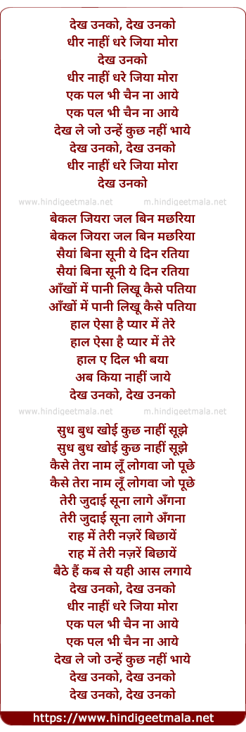 Lyrics of Dekh Unko - देख उनको, देख उनको