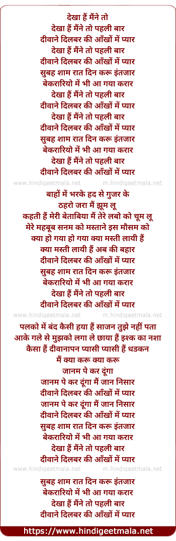 Lyrics of Dekha Hai Maine To Pehali Bar - देखा हैं मैंने तो पहली बार