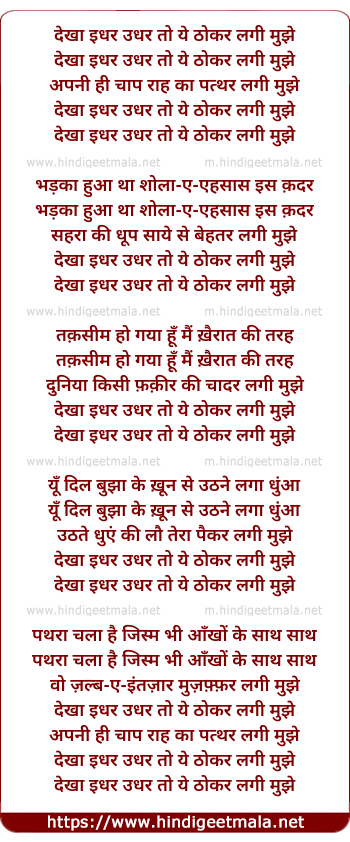 Lyrics of Dekha Idhar Udhar Toh Yeh Thokar Lagee Mujhe - देखा इधर उधर तो ये ठोकर लगी मुझे