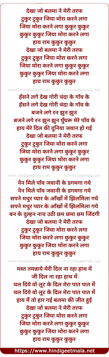tukur tukur jiya mora karne laga
