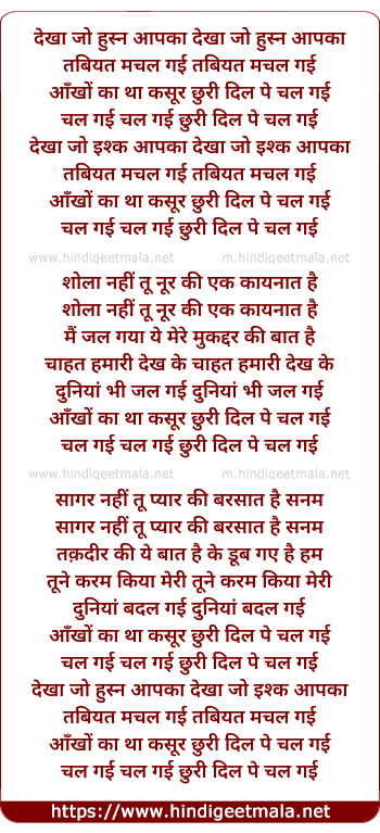 Lyrics of Dekha Jo Husn Aapka - देखा जो हुस्न आपका
