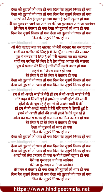 dekha jo tujhko to pyar ho gaya dil mera tujhpe nisar ho gaya