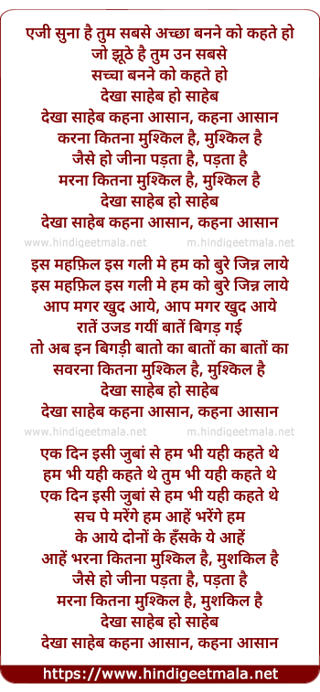 Lyrics of Dekha Sahab O Sahab Kahna Aasana - देखा साहेब ओ साहब कहना आसान
