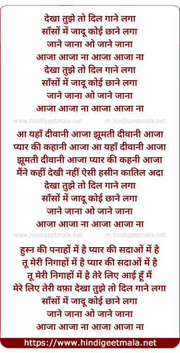 Lyrics of Dekha Tujhe To Dil Gane Laga - देखा तुझे तो दिल गाने लगा