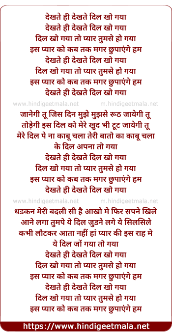 Lyrics of Dekhate Hi Dekhate Dil Kho Gayaa - देखते ही देखते दिल खो गया
