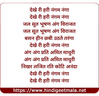 Lyrics of Dekhe Ri Hari Nangam Nanga - देखे री हरी नंगम नंगा