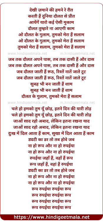 daulat ke gulam, tumko mera hain salam