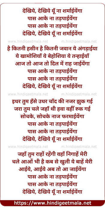 Lyrics of Dekhiye Yu Na Sharmaiyega - देखिये यूँ ना शरमाईयेगा