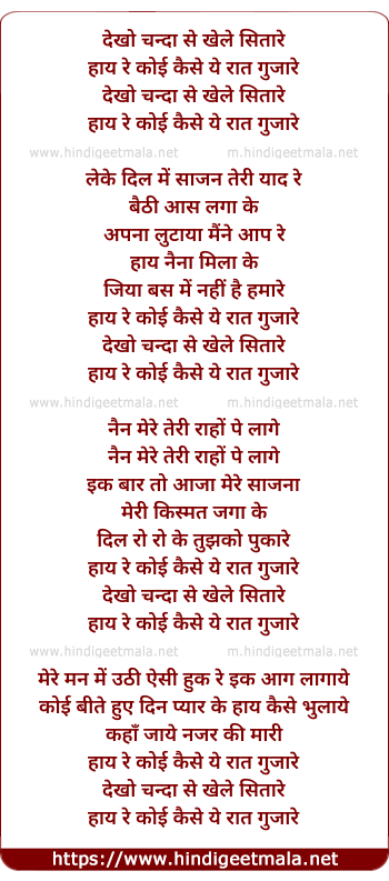 Lyrics of Dekho Chanda Se Khele Sitare - देखो चन्दा से खेले सितारे