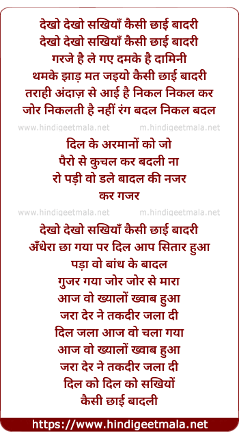 Lyrics of Dekho Dekho Sakhiyan Kaisi Chhayi Baadari - देखो देखो सखियाँ कैसी छाई बादरी