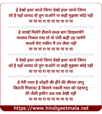 Lyrics of Dekho Idhar Jaano Jigar - देखो इधर जानो जिगर
