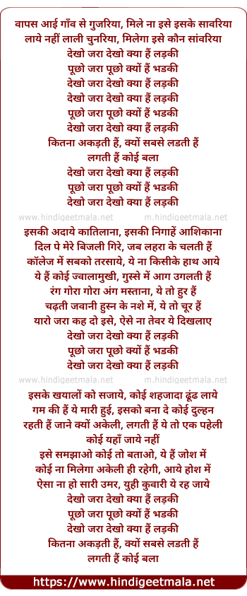 Lyrics of Dekho Jara Dekho Kya Hai Ladki - देखो जरा देखो क्या हैं लड़की