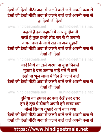 Lyrics of Dekho Jee Dekho Mithee Ada Se - देखो जी देखो मीठी अदा से