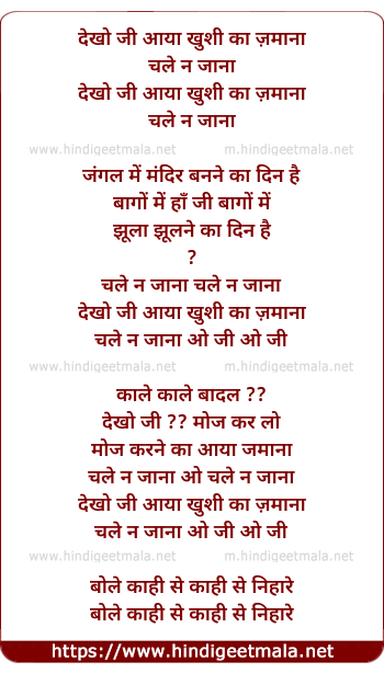 Lyrics of Dekho Ji Aaya Khushi Ka Zamana - देखो जी आया खुशी का ज़माना