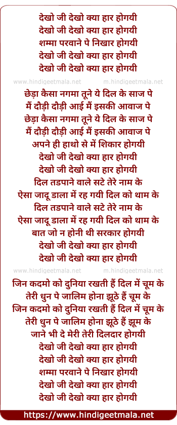 Lyrics of Dekho Ji Dekho Kaisi Har Ho Gayi