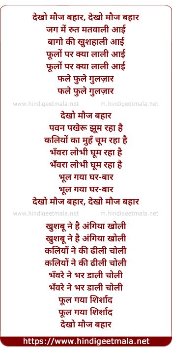 Lyrics of Dekho Mauj Bahar - देखो मौज बहार