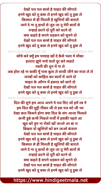 Lyrics of Dekho Pal Dekho Pal - देखो पल देखो पल