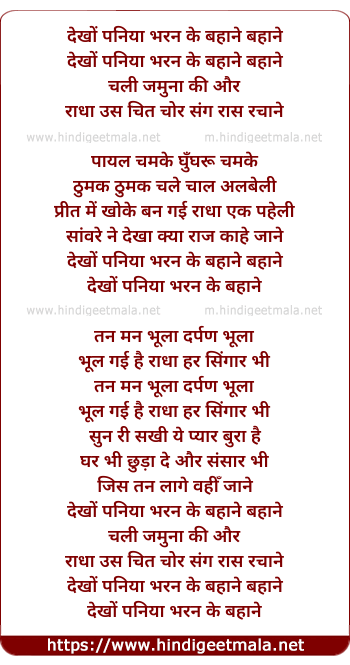 Lyrics of Dekho Paniya Bharan Ke Bahane - देखों पनिया भरन के बहाने