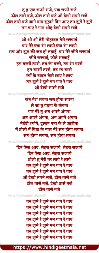 dhol taase baje, dhol taase baje oh dekho sapne saje