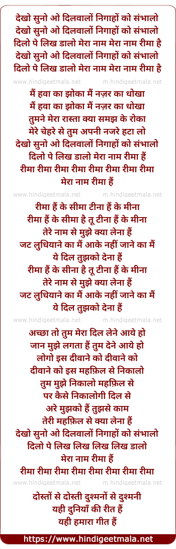 dilo pe likh dalo mera naam rima hai