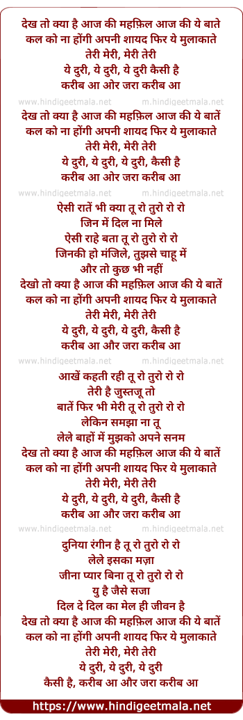 Lyrics of Dekho To Kya Hai Aaj Ki Mehfil - देख तो क्या है आज की महफ़िल