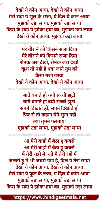 Lyrics of Dekho Yeh Kaun Aaya, Mujhko Udda Laya - देखो ये कौन आया, देखो ये कोन आया