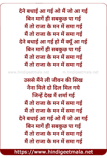Lyrics of Dene Badhayi Aa Gayi - देने बधाई आ गई