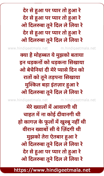 Lyrics of Der Se Huaa Par Pyaar To Huaa Re - देर से हुआ पर प्यार तो हुआ रे