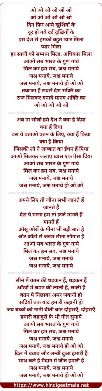 Poetic Translation - Lyrics of Desh Bhakti Ka Jashn - ओ ओ ओ ओ ओ ओ