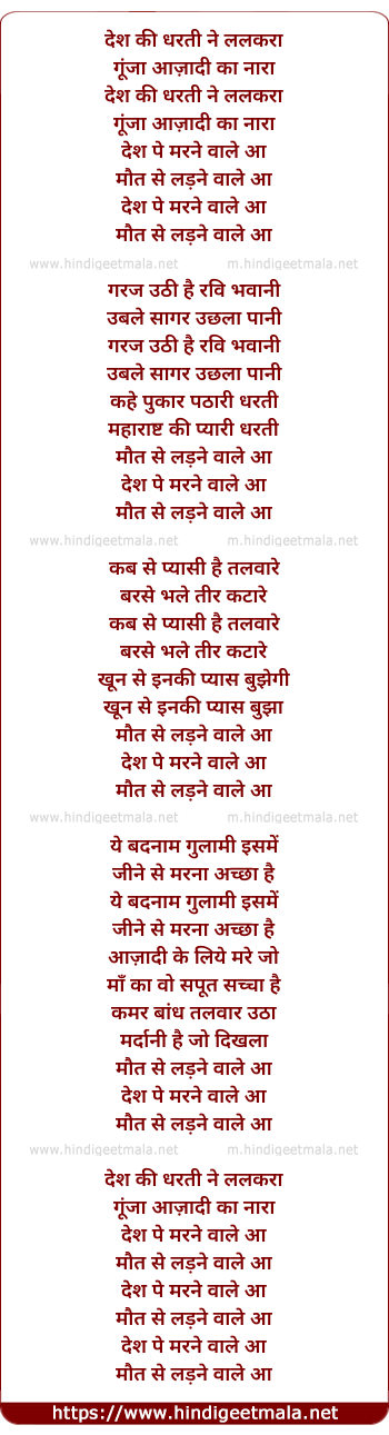 Lyrics of Desh Ki Dharti Ne Lalkara - देश की धरती ने ललकरा