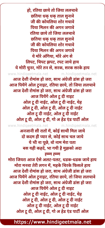 aaj peeyenge all tonight, ratiya chhaye, to jiya lalchave