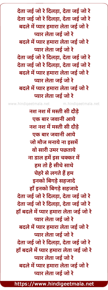 Lyrics of Deta Jai Jo Re - देता जई जो रे