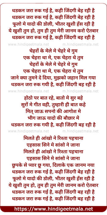 Lyrics of Dhadakan Jara Ruk Gayee Hai - धड़कन जरा रुक गयी हैं