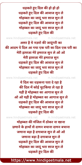 Lyrics of Dhadakte Huye Dil Ko - धड़कते हुए दिल को