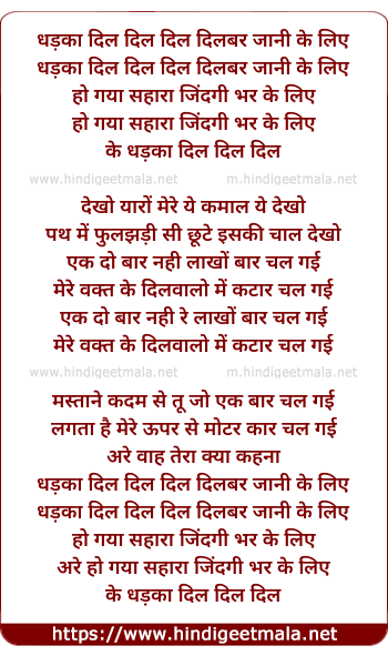 Lyrics of Dhadka Dil Dil Dil - धड़का दिल दिल दिल