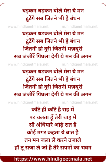 Lyrics of Dhadkan Dhadkan Bole Mera Yeh Mann - धड़कन धड़कन बोले मेरा ये मन