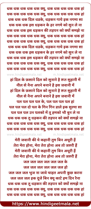 Lyrics of Dhak Dhak Dhak Dil Dhadke - धक धक धक दिल धड़के