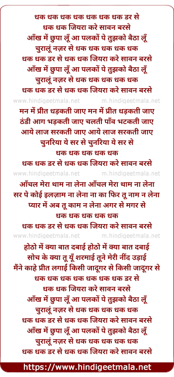 Lyrics of Dhak Dhak Jiyera Kare Sawan Barse - धक धक जियरा करे सावन बरसे