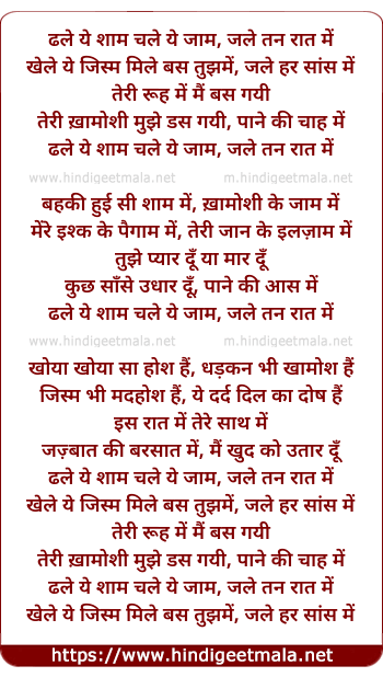 Lyrics of Dhale Ye Shaam Chale Ye Jaam - ढले ये शाम चले ये जाम