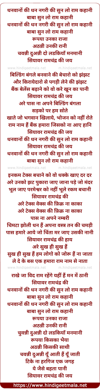 dhanwano ki dhan nagri ki sun lo ram kahani